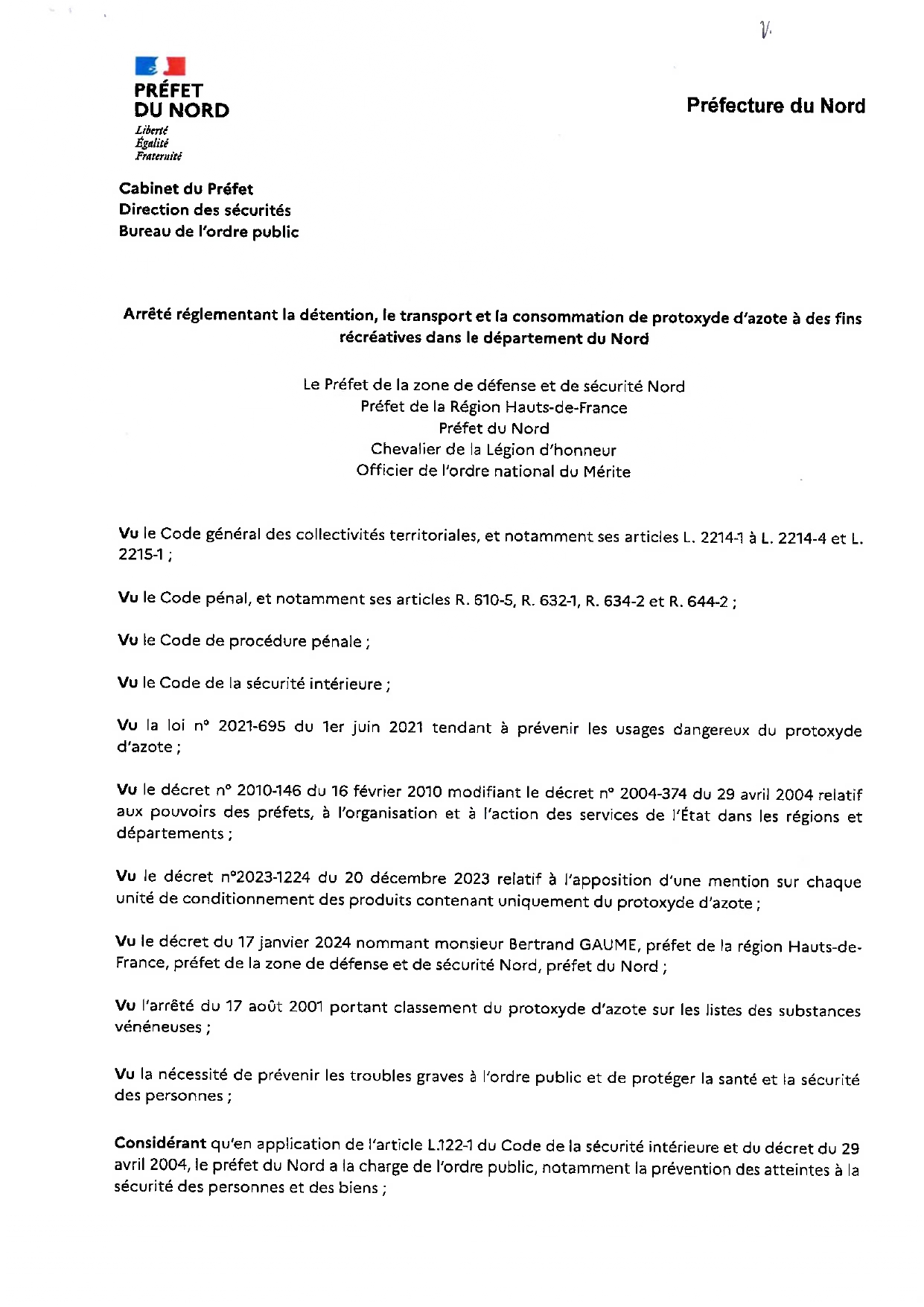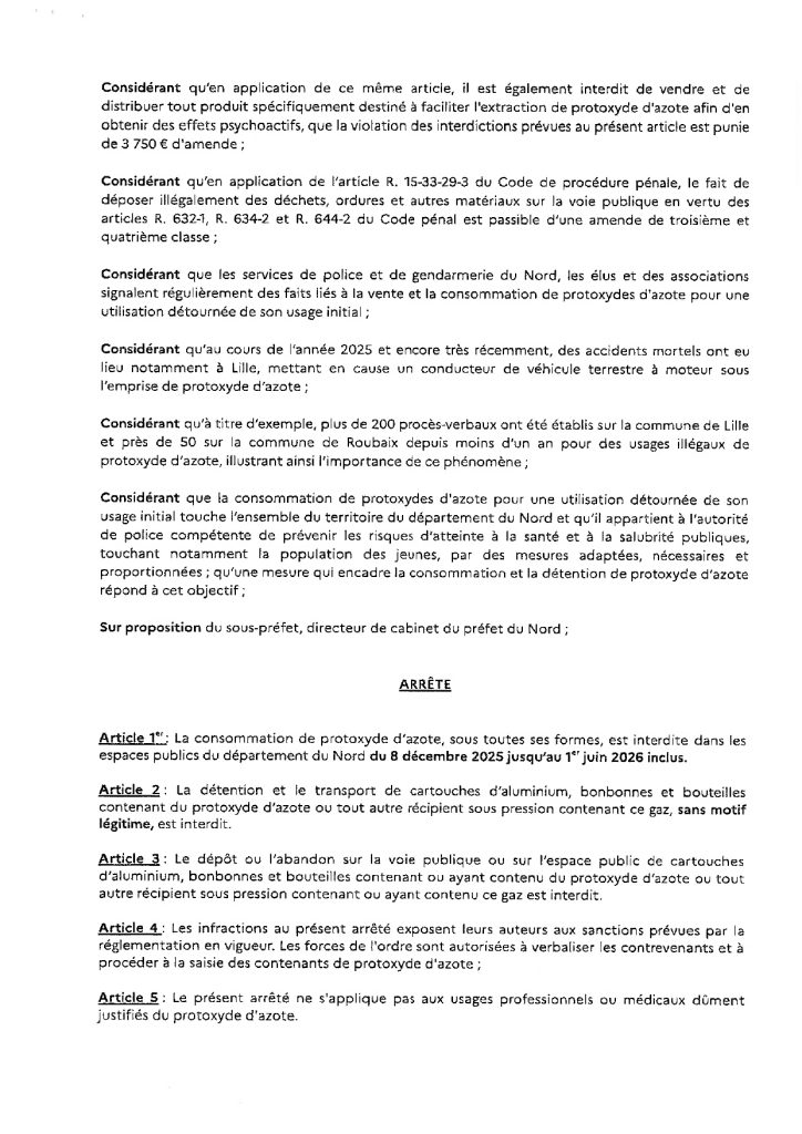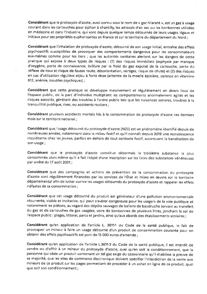 Arrêté règlement la détention, le transport et la consommation de protoxyde d’azote