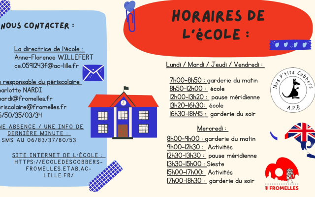 L’école des « Cobbers » (copains en Australien) accueille les enfants de la maternelle, toute petite section au CM2.